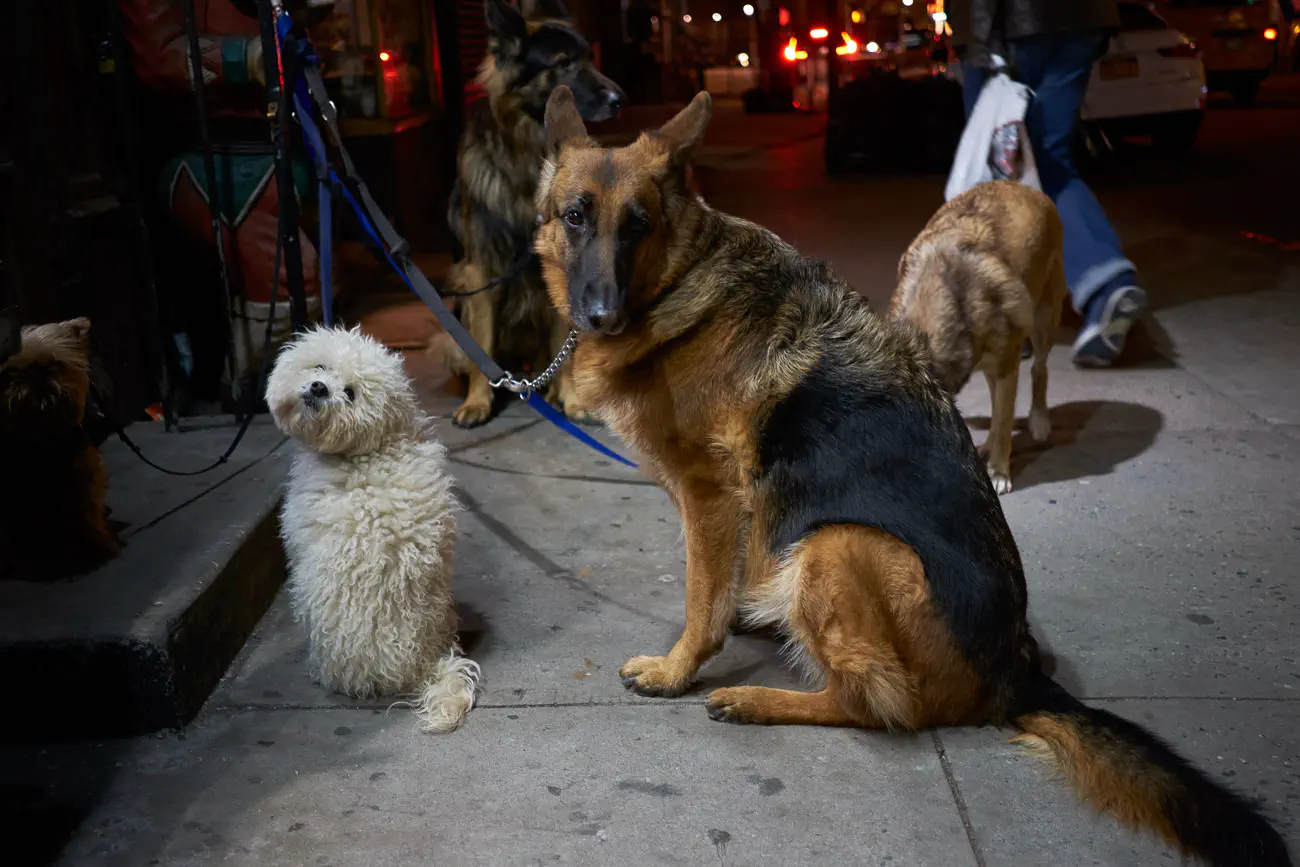 Dog walker taking a pause