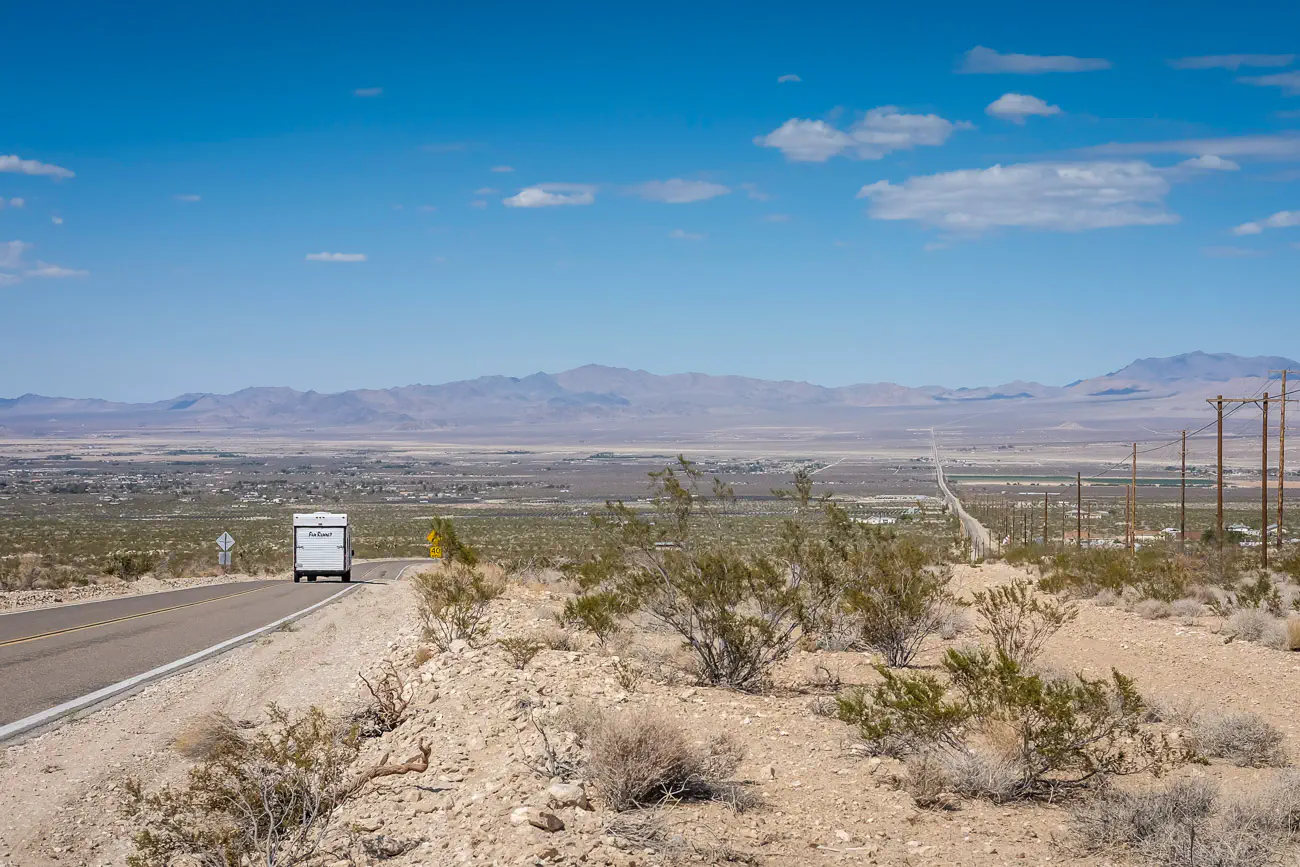 We begin the day packing up our campsite at Big Bear Lake and headed towards State Route 18. The scenery changes very dramatically as greenery gives way to desert.