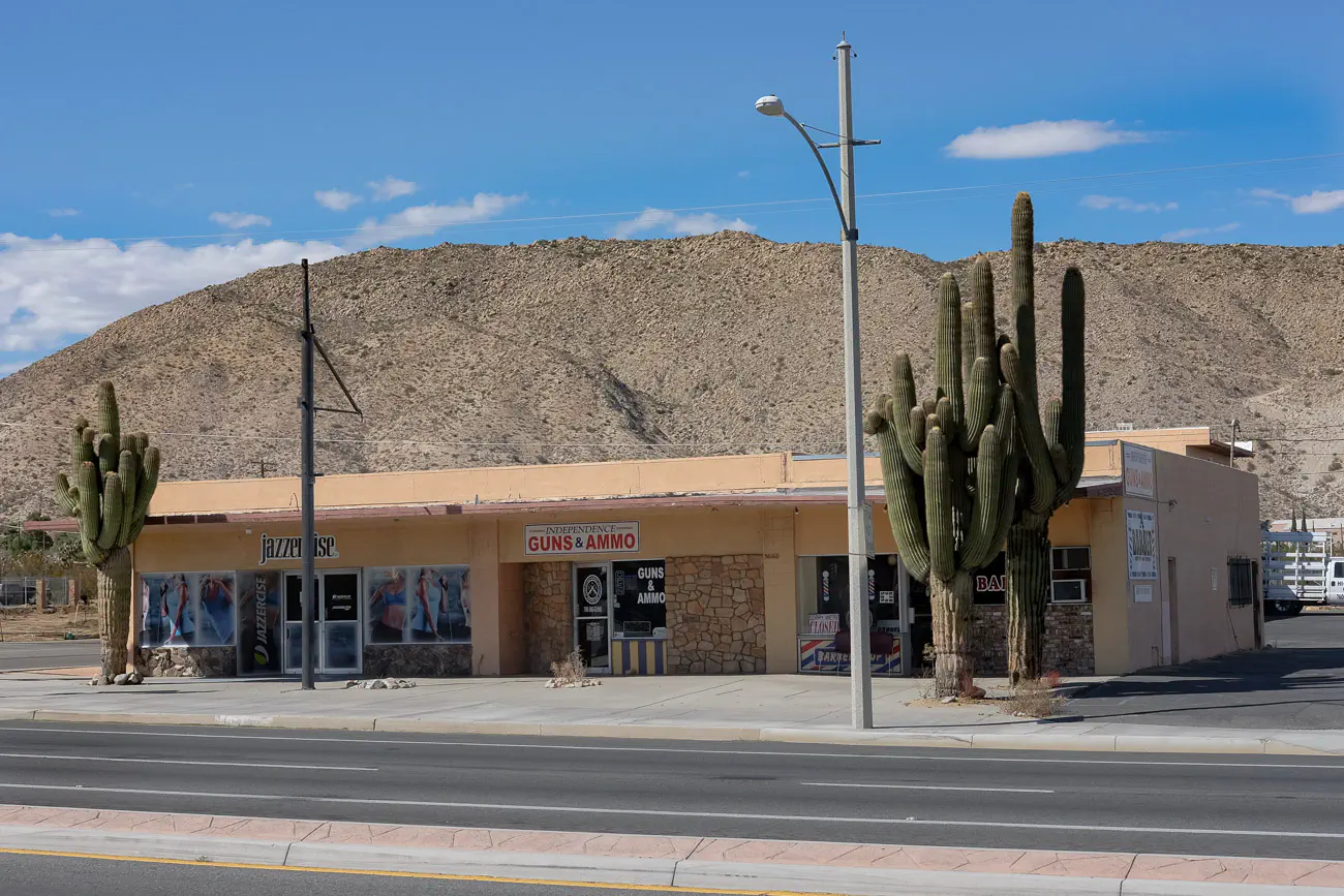 In the Town of Yucca Valley, the oversized cactuses are reminiscent of those in GTA: V. The town was really quiet and dry-hot. Reminded me of Yuma, AZ.
