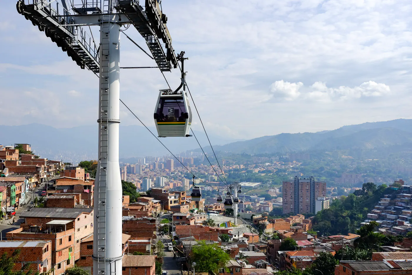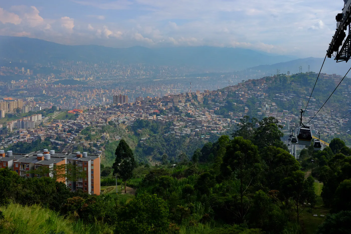 We tried to ride as many Metrocable lines as we could, and somehow ended up on line L towards Arví. We had no idea where it was taking us … we were going higher and higher until we were flying over this dense forest. It felt like we were transplanted. Coming back from Arví, we could see the city nestled in the Aburrá Valley. Pretty sick view.