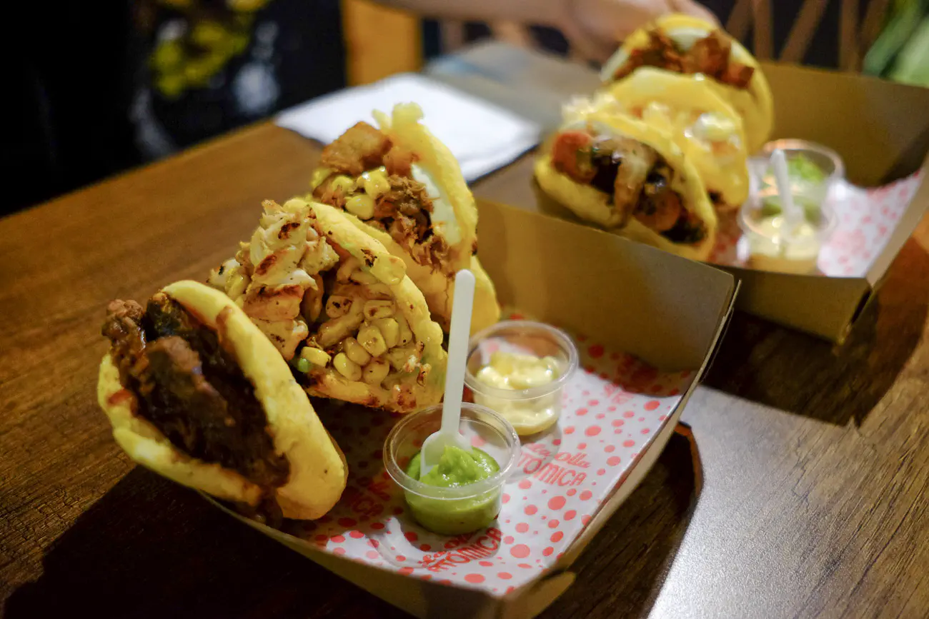 This place is supposed to be a market for food from all around the world, but we did not come to Medellín for stir fry. So we ended up with these delicious arepas from “La Olla Atomica”.