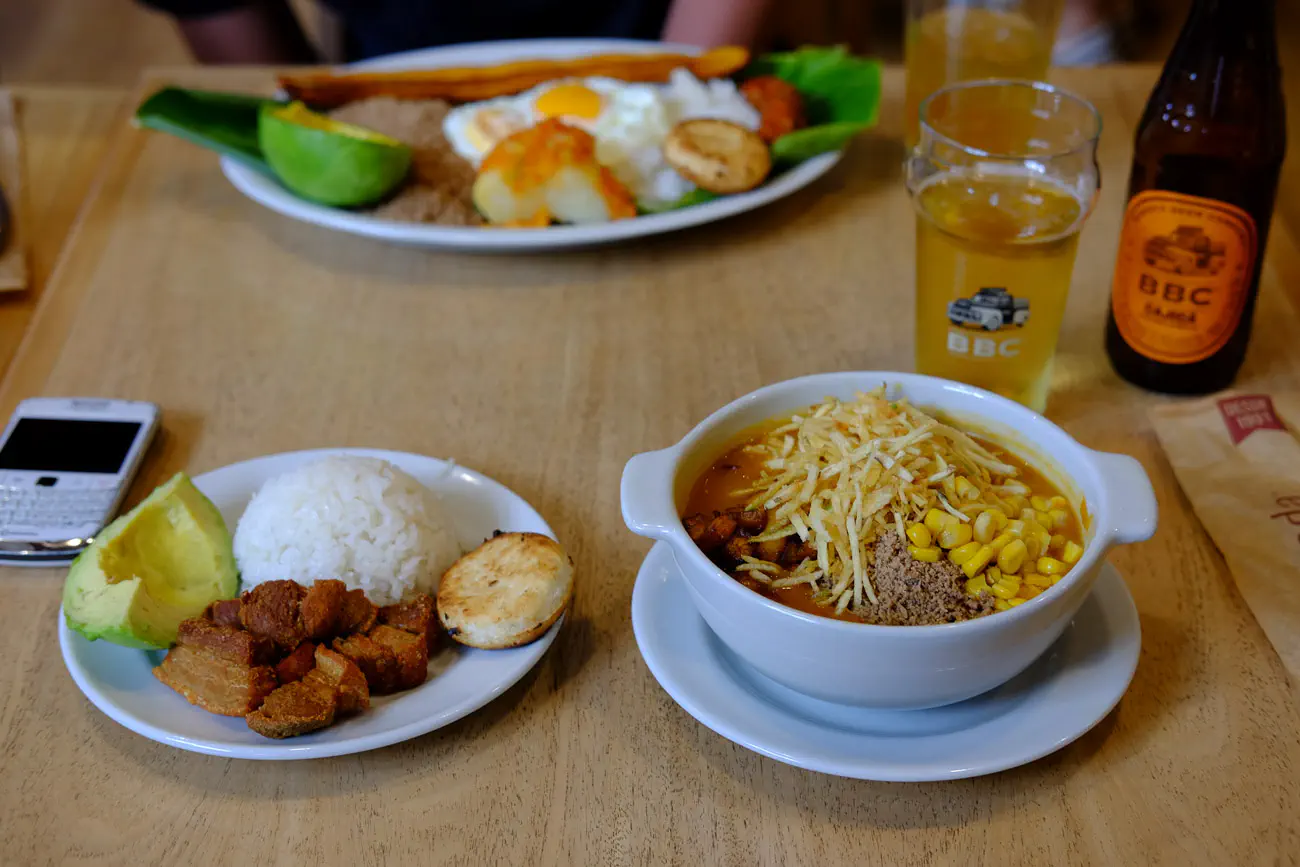 And here is Cazuela de fríjoles from Hacienda, with a Mini Bandeja Paisa in the background. A fantastic end to our trip.