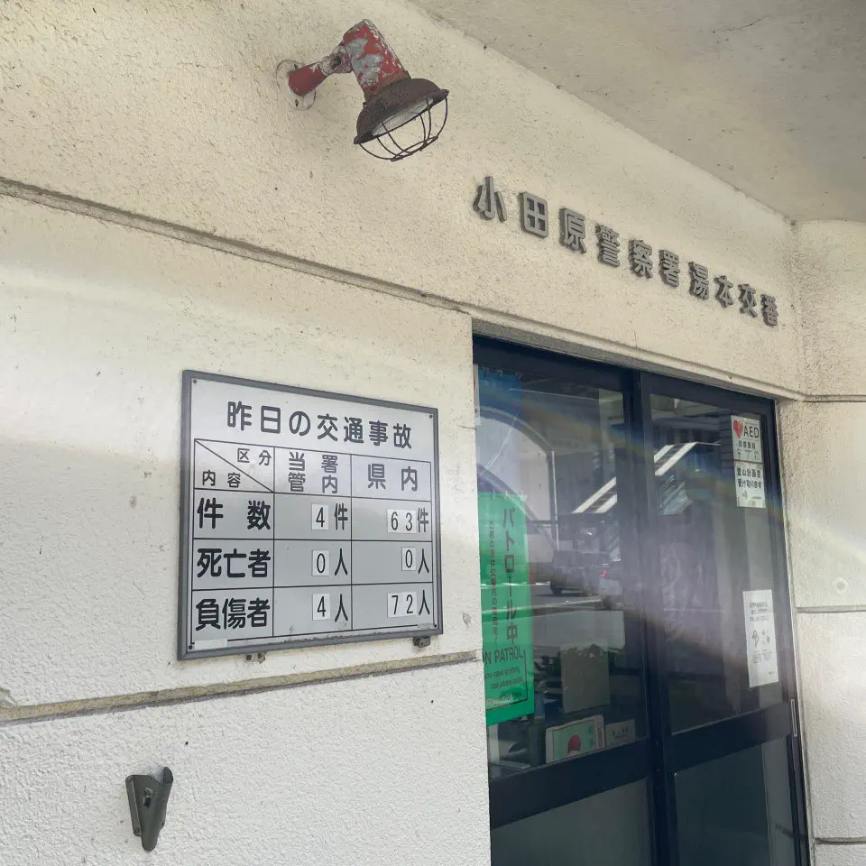 In all, we ended up getting to Hakone over an hour later. I wasn’t planning on taking the Shinkansen at all on this trip, so despite the cost I was pleased. After arriving in Hakone-Yumoto, we walked around the cute townsite while waiting for a bus that would take us to Lake Ashi. I found this dashboard posted outside the police station.