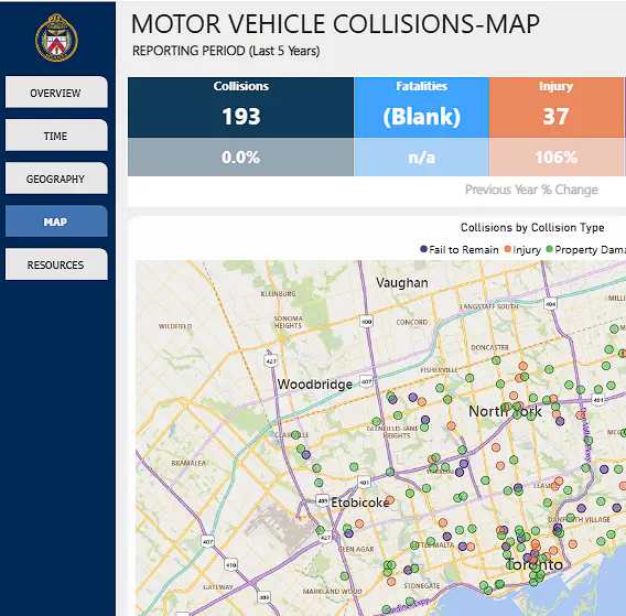 While I appreciate the transparency, it somewhat concerned me that 72 people were injured! For comparison, I looked up the same date for motor vehicle accident data from Toronto Police Service. There were 193 collisions with 37 injuries in Toronto that day.